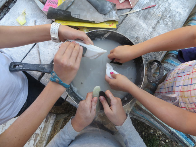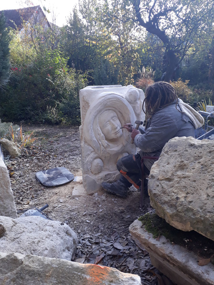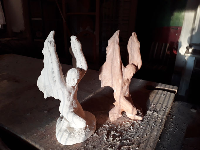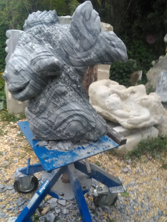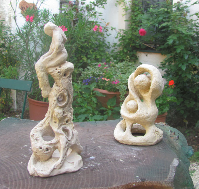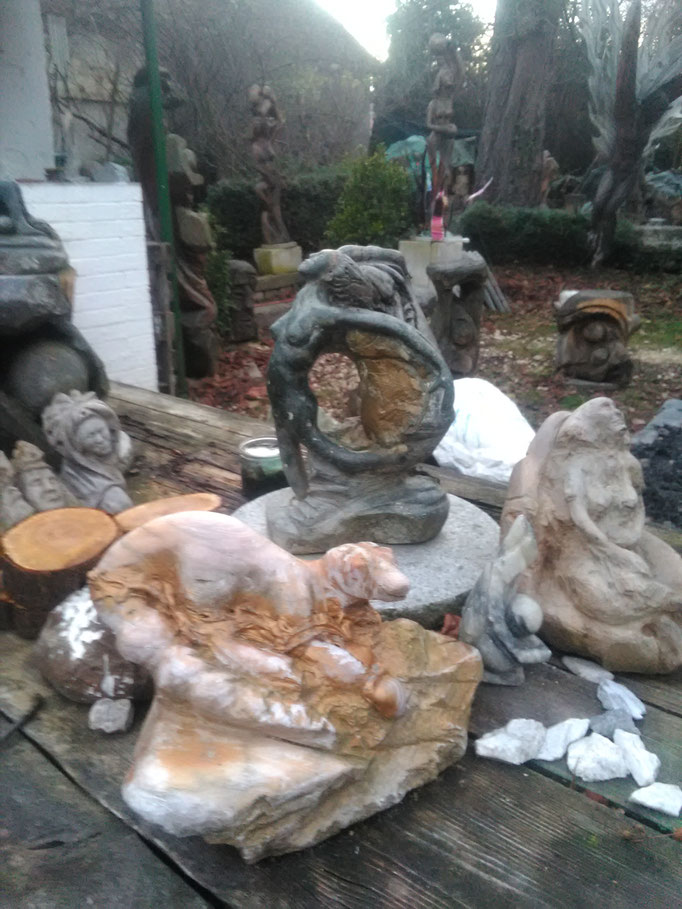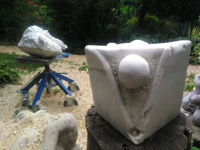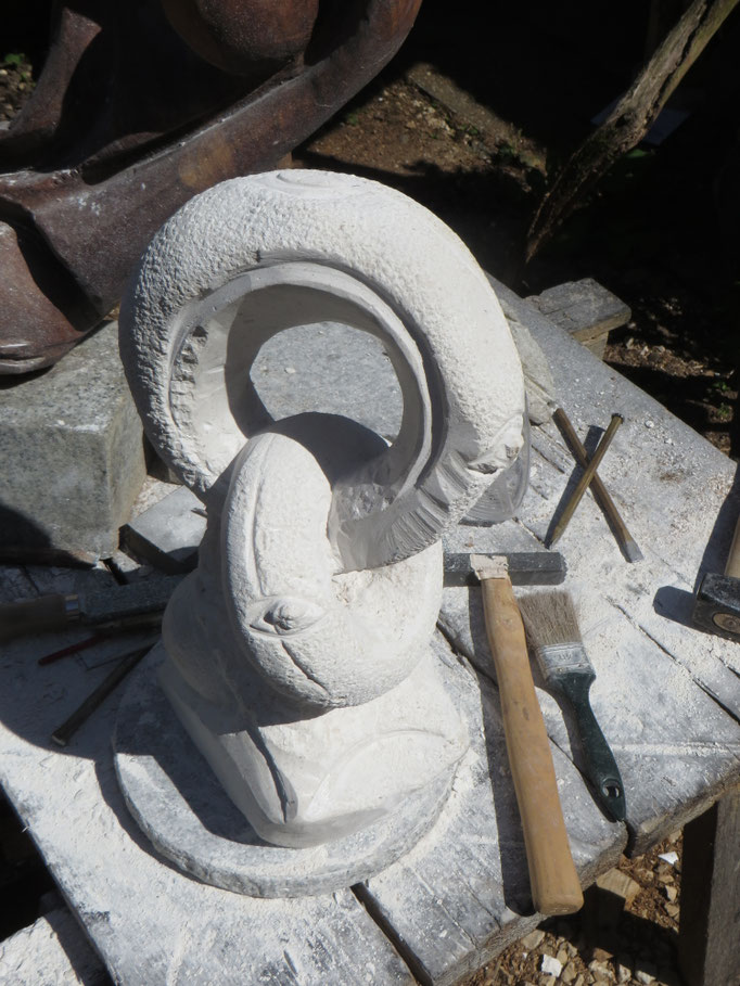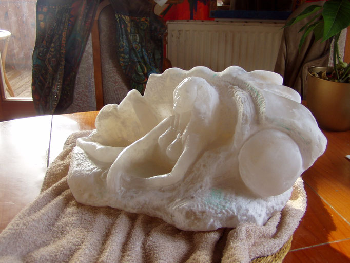 Aber harry Raab hat dieses Naturmaterial immer schon fasziniert und so begann er schon im ersten Bildhauerjahr neben Holzskulpturen auch Speckstein und Alabaster zu behauen. Mittlerweile hat er auch Marmor-, Kalkstein, - und Sandsteinskulpturen erschaffen. Immer unter der Prämisse, mit möglichst wenig Maschineneinsatz zu arbeiten. Schlag um Schlag mit Eisenmeisseln und Bildhauerklöppel, Schleifen und Glätten mit Spezialfeilen und Schleifpapieren.Eine faszinierende Schwerarbeit,bei der man das steinharte Naturmaterial erfühlen und bewundern darf.